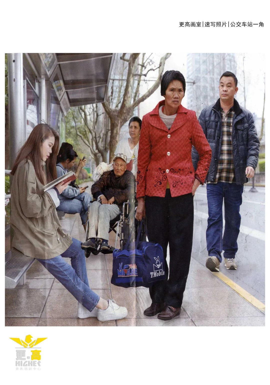 (1)构图,面对人物组合的场景,不宜马上就动手画,首先应该静下心来,用几分钟的时间认真观察人物组合之间的关系。要做到心中有数,再着手起稿。要特别注意人物体之间的形体关系。
